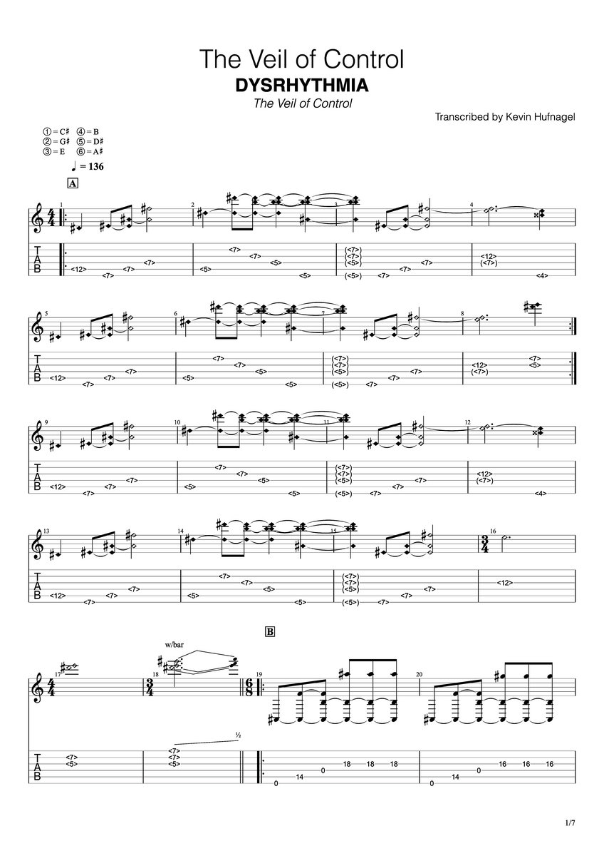 The entire 'The Veil of Control' record transcribed for guitar by Kevin Hufnagel. Comes with a PDF book of the tabs/notation (81 pages) and the original Guitar Pro files (a good tool for slowing down and practicing along to).